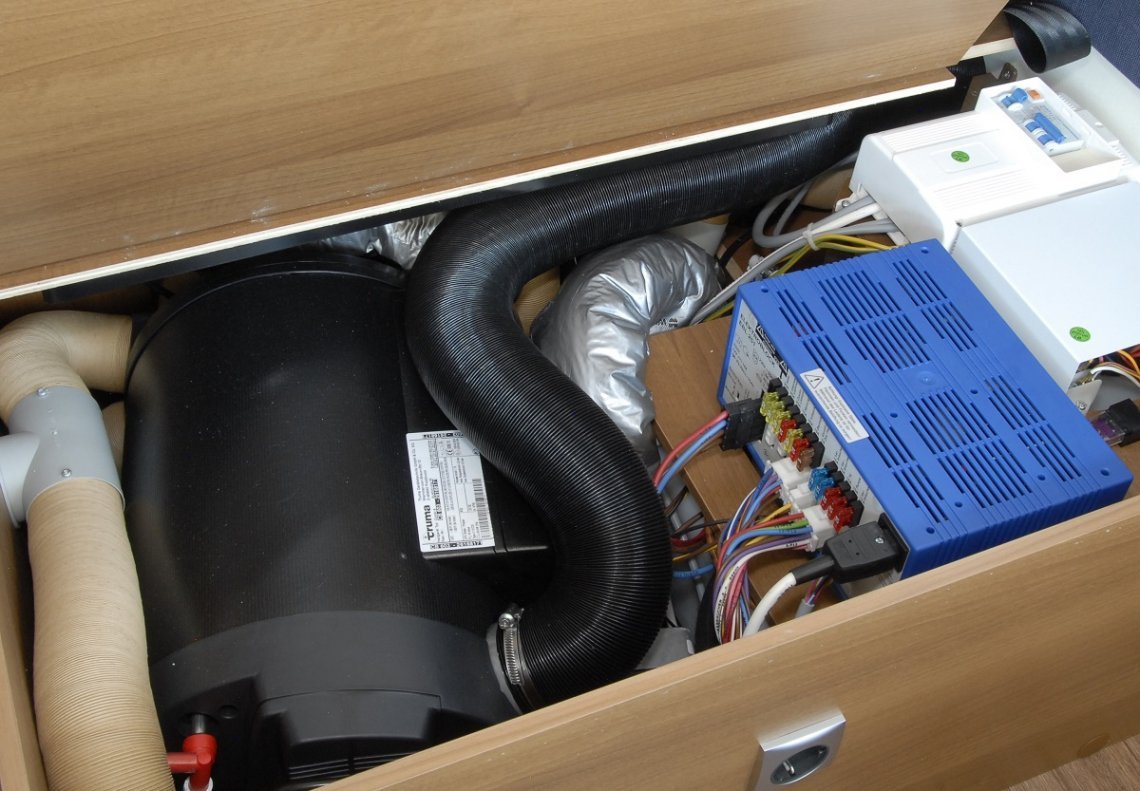 Op de Truma Combi zitten verschillende aansluitingen voor luchtslangen die door de camper worden verspreid. De verwarmde lucht van de Truma Combi wordt door middel van een ingebouwde ventilator door deze luchtslangen naar de verschillende uitblaasopeningen geblazen waardoor de camper ook weer gelijkmatig opwarmt.
