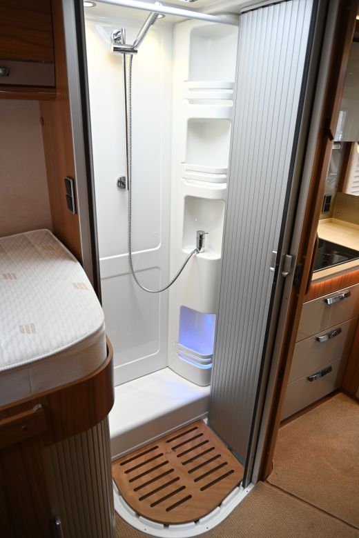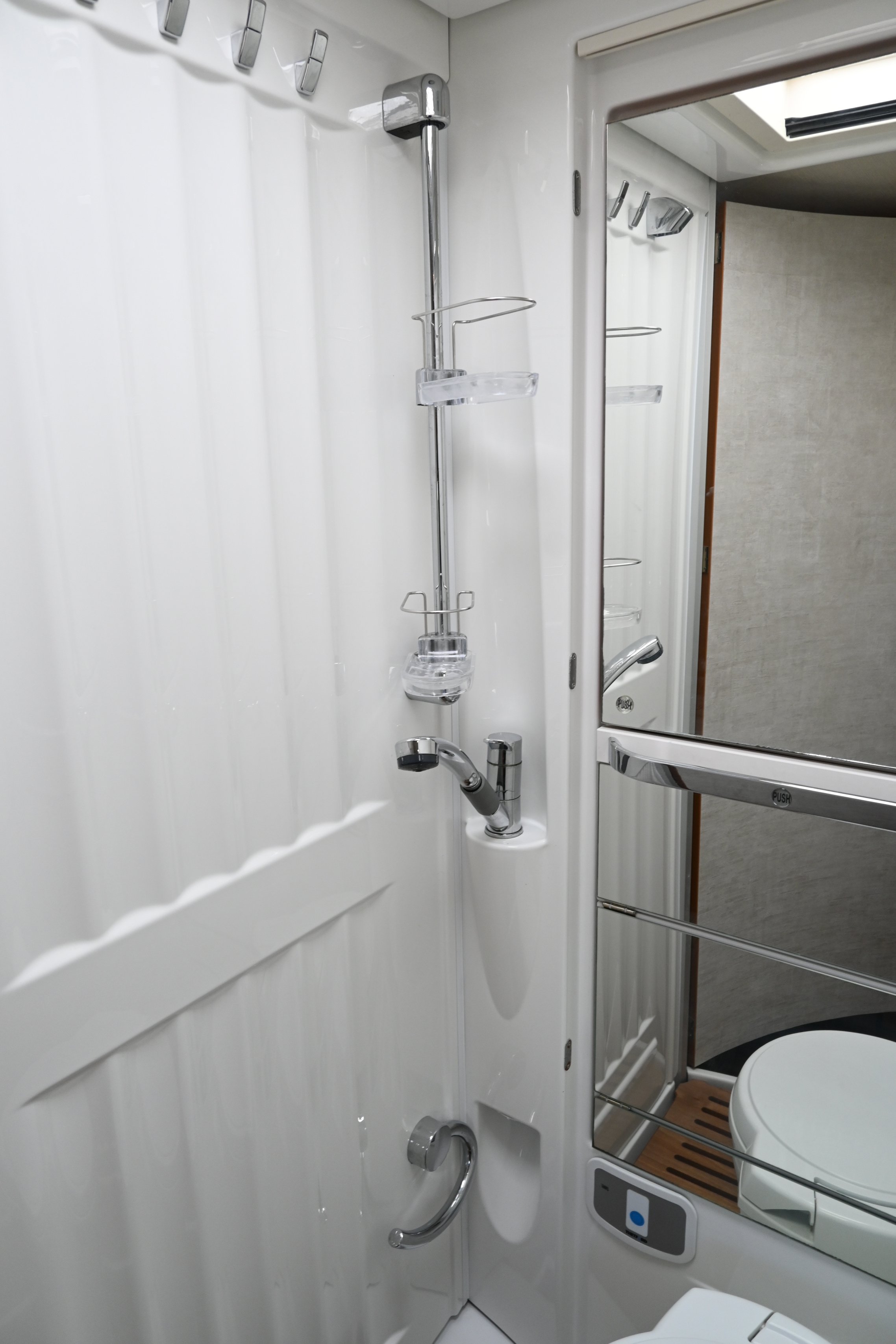 Met een douche in een camper bedoelen we feitelijk de douchekop die in combinatie met een doucheslang aanwezig is. Dit is dus niet per definitie een complete douchecel. Met een douche kan net zo goed een kraan met uittrekbare handdouche worden bedoeld. Kijk dus goed naar het plaatje van de indeling en de foto’s om te zien hoe comfortabel de aanwezige douche in de camper is.