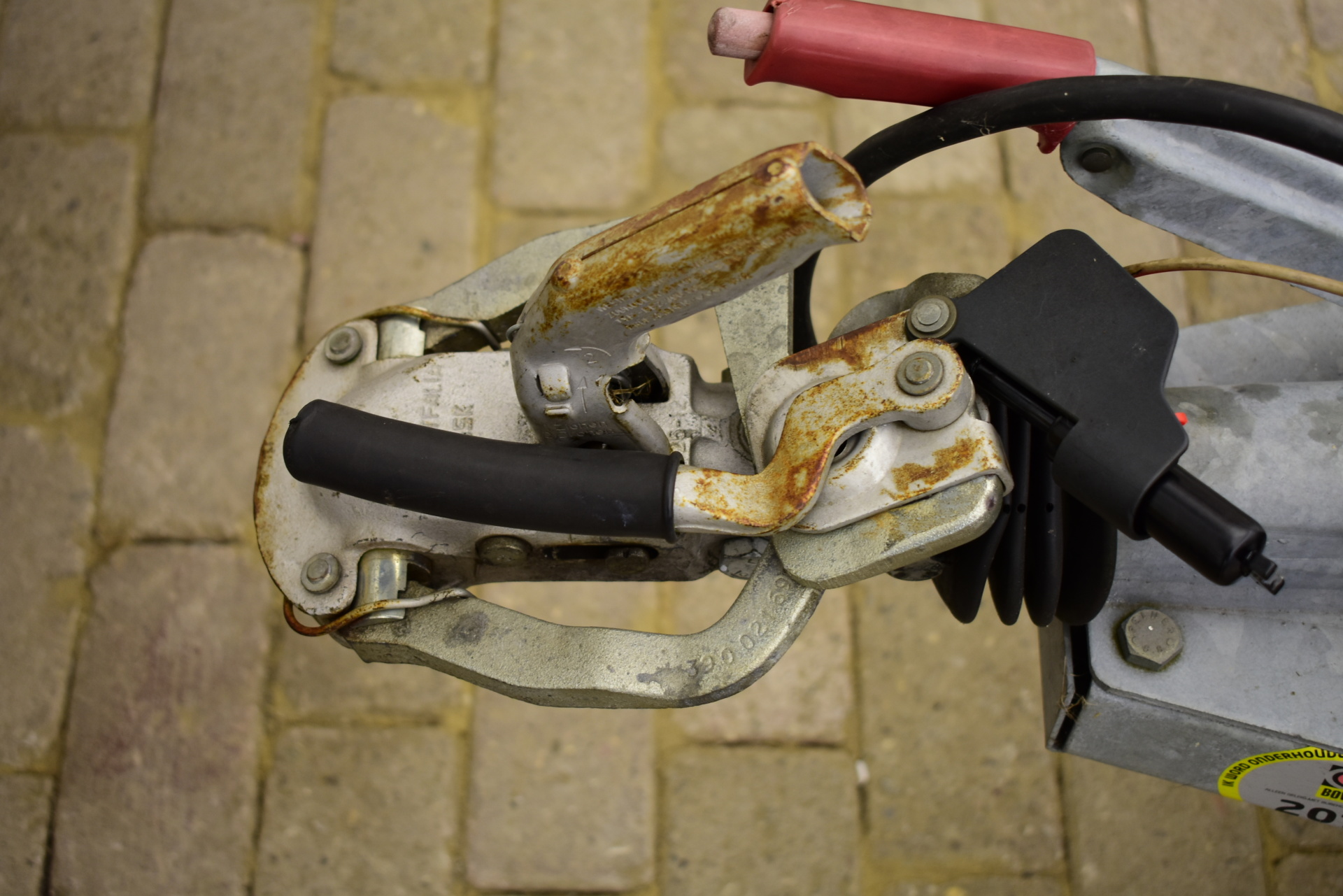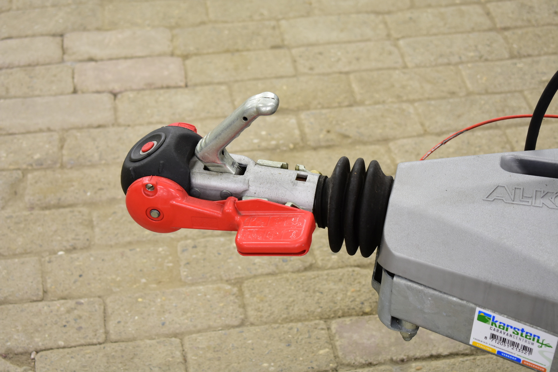 Allereerst hebben we de ALKO AKS-1300. Dit is de uitvoering met een draaischijf aan de zijkant van de koppeling die je moet aandraaien totdat hij begint te ratelen. Vervolgens moet je de hefboom aan de andere kant van de koppeling naar beneden drukken. Deze stabilisator is geschikt voor wat lichter caravans tot 1360kg.