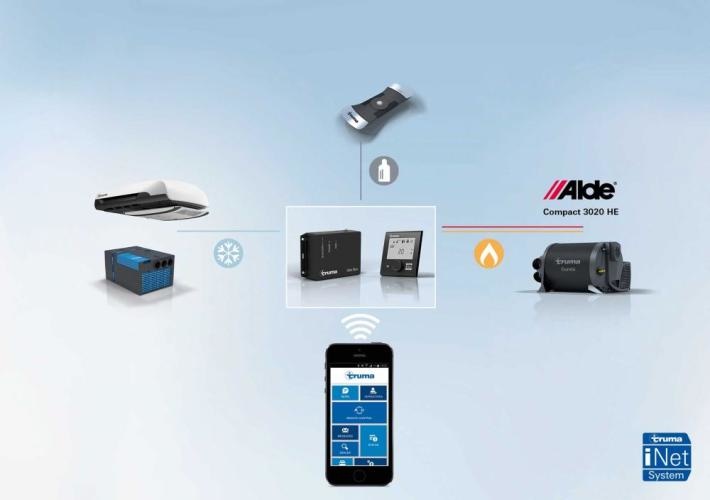 Truma iNet is een van de laatste ontwikkelingen van Truma op het gebied van klimaatbeheersing in de caravan. De basis van Truma iNet is de Truma iNet Box, de centrale besturingseenheid waarmee je compatible Truma apparatuur (bijv. airco, combiketel) op afstand kunt bedienen. De bediening verloopt via de gratis Truma App en met de App is het mogelijk om op afstand het klimaat in de caravan te regelen via Bluetooth of per SMS.