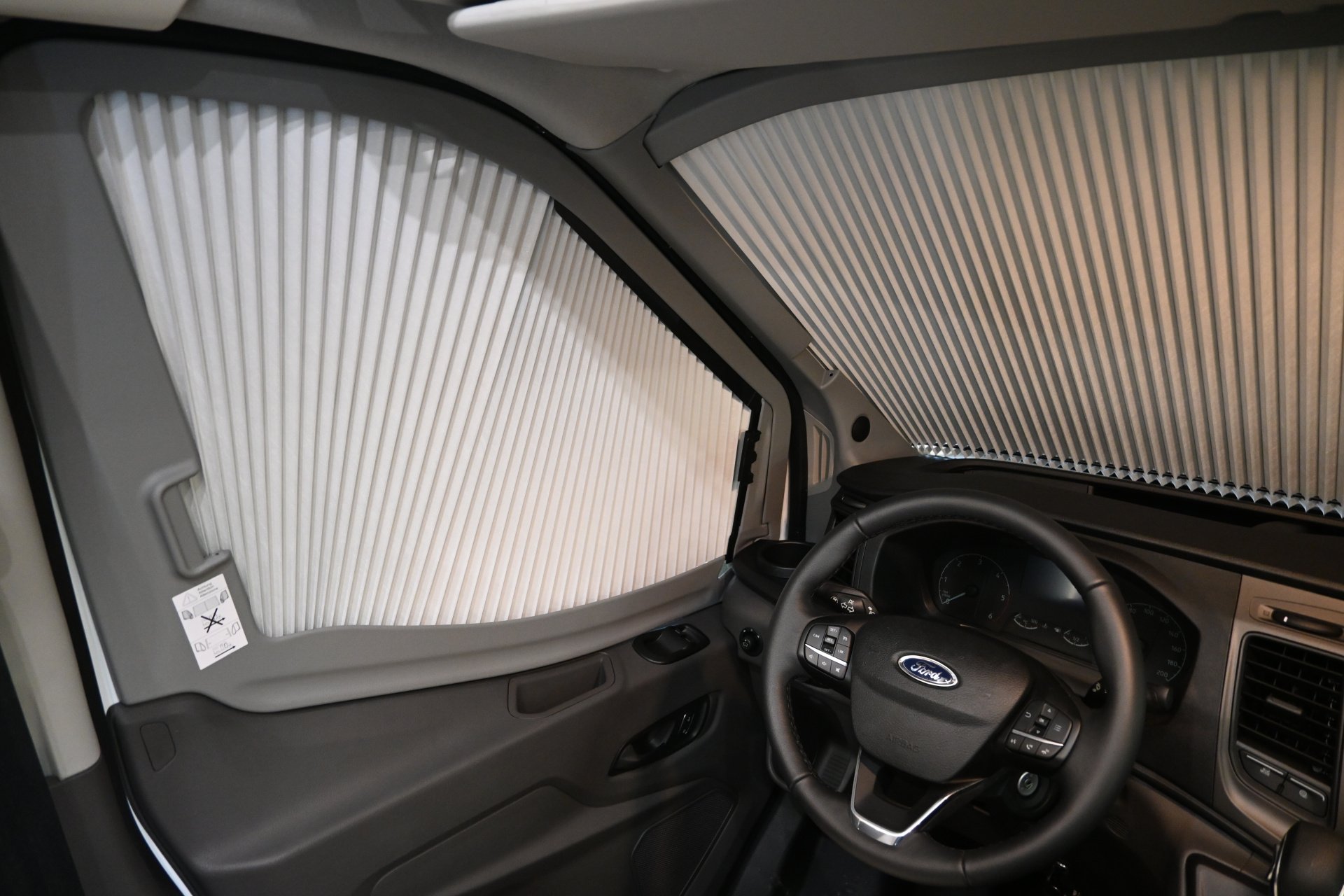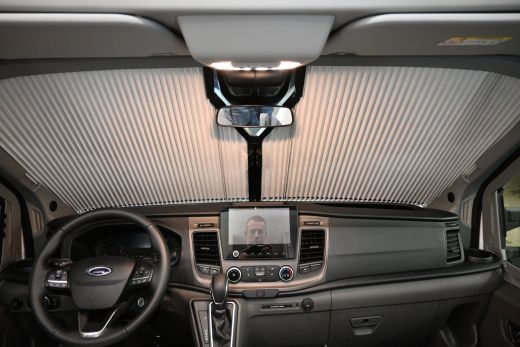 Bij een camper die is voorzien van verduistering in de cabine is er een mogelijkheid om de ramen van het autogedeelte te blinderen. De mooiste oplossing is een plissé blindering die aan speciale geleiderails is bevestigd, maar de blindering kan ook bestaan uit eenvoudige gordijntjes of stoffen blindering die met drukknoopjes kan worden bevestigd.