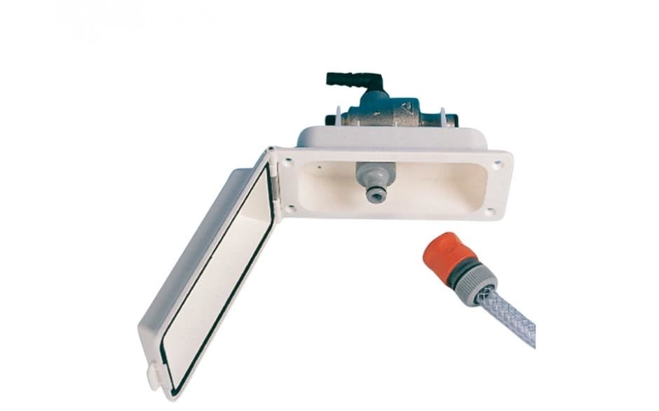 Een vaste watertank in een caravan ligt meestal onder één van de bedden of banken. Het vullen van de watertank doe je bijna altijd via een vulopening aan de buitenkant van de caravan. In sommige gevallen is deze vulopening niet aanwezig en moet je dus met een gieter de watertank van binnenuit vullen. Dit is niet heel praktisch en maakt de kans op knoeien vrij groot. Gelukkig zijn de meeste vaste watertanks wel voorzien van een vulopening aan de buitenkant en hierdoor kun je de tank met een gieter of een tuinslang vullen. In de tank is vaak een overloop aanwezig om overstromen te voorkomen. Er zijn ook vaste watertanks die zijn uitgerust met een vlotter systeem of een andere vorm van een vaste wateraansluiting waardoor je de caravan met een tuinslang kunt aansluiten op de watertoevoer. Hierdoor heb je continu stromend water en dit wordt ook wel een City Wateraansluiting genoemd.